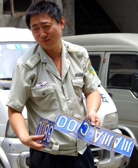 副隊(duì)長(zhǎng)車上取牌照有動(dòng)靜 拿出一副斷牌照
