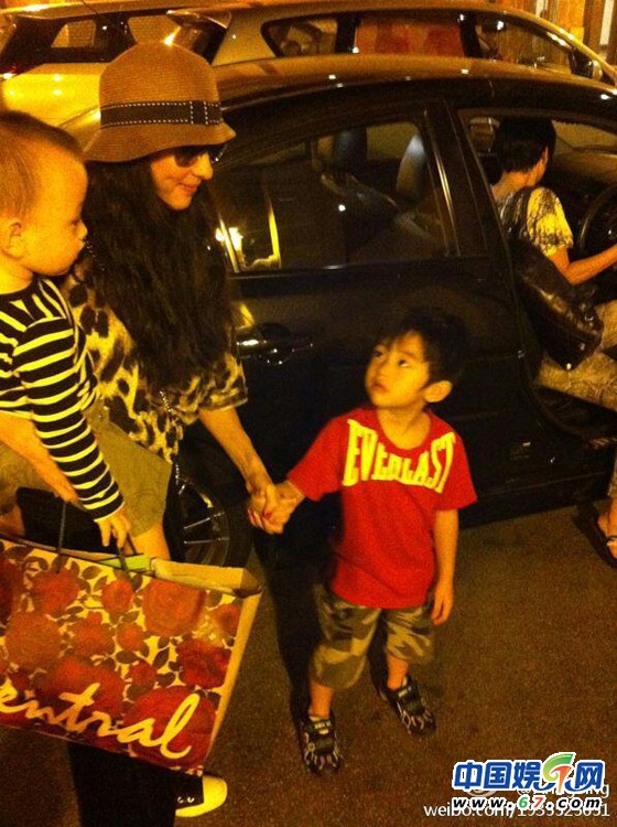 張柏芝帶兩兒子購?fù)b Lucas試衣黑臉酷似霆鋒(組圖)