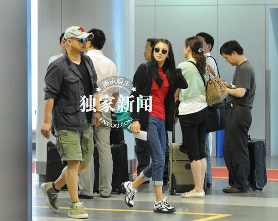 張雨綺成“跟包” 王全安機(jī)場(chǎng)“坐車”賣萌(組圖)