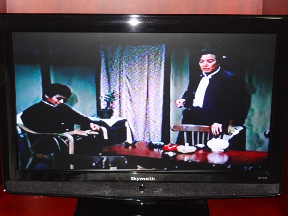 龍江溫泉的別墅客房里不少電器都是中國(guó)產(chǎn)的,圖為一臺(tái)創(chuàng)維平板電視。