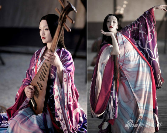 周迅在劇中時(shí)而彈琴時(shí)而起舞,寬大的衣袖在隨著韻律舞動(dòng)著。內(nèi)搭依舊用清純的色調(diào),藍(lán)粉色像是訴說(shuō)著少女的心事,而那醬紫色的罩衫則和妝容一樣妖嬈魅惑。
