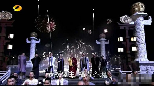 劇中,武林豪杰來拜壽,畫面中卻驚現(xiàn)華表!難道這是天安門嗎?另外,百花齊放的場景確實(shí)很像迪士尼樂園里城堡上空的煙花,果然夠炫,畫面熱鬧的程度堪比春晚亦或頒獎(jiǎng)晚會。