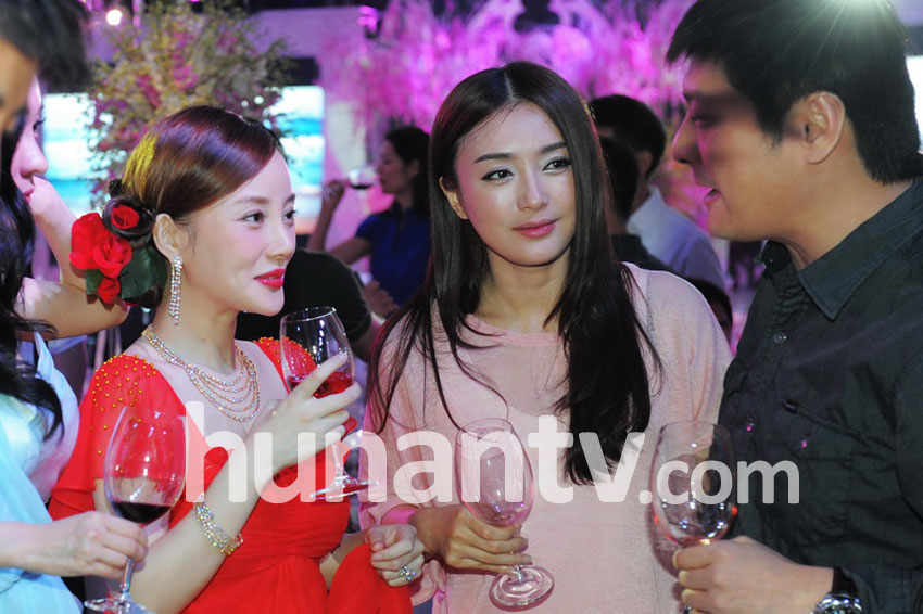 李小璐寬松紅裙突顯孕相 賈乃亮頻頻敬酒舉杯豪飲(圖)