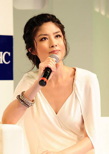 陳慧琳穿低胸裝謹(jǐn)慎防走光 生育后暴瘦出席代言(組圖)