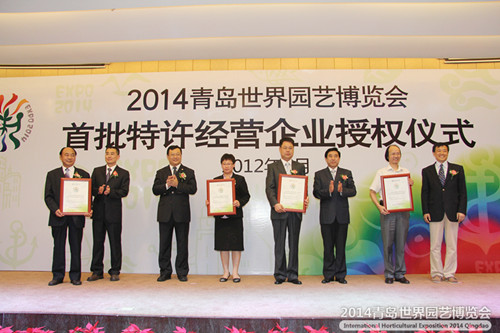 ????昨日下午,2014青島世園會(huì)舉行首批特許經(jīng)營(yíng)企業(yè)授權(quán)儀式,副市長(zhǎng)、2014青島世園執(zhí)委會(huì)執(zhí)行主任王建祥出席儀式。