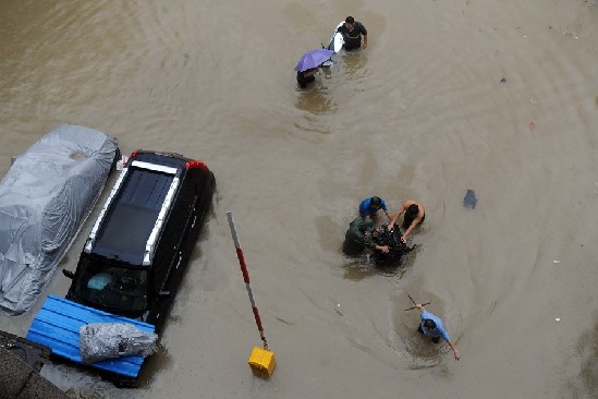 7月13日,武漢遭遇特大暴雨襲擊,城區(qū)多處積水嚴(yán)重成澤國。