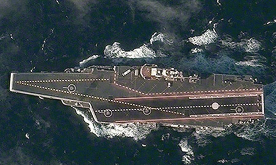美國DigitalGlobe公司在其網(wǎng)站上公布了其QuickBird遙感衛(wèi)星拍攝到的中國航母試航圖像。這張照片拍攝于2011年12月8日,地域位于黃海水域。