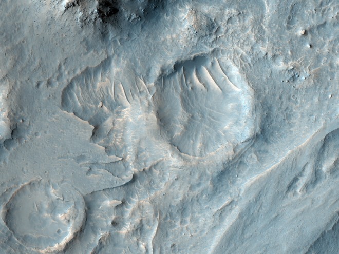圖片上方是夏普山,一些小山環(huán)繞在其四周,許多科學家相信,在圖中環(huán)形區(qū)域內(nèi),有水或者冰的遺留。當好奇號的輪子駛上火星的土地之后,它將計劃向著位于隕石坑中央的夏普山攀登。