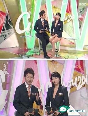 7.韓國MBC電視臺主播楊承恩,是以黑色外套配上與膚色相近的肉色短裙登場,由于短裙與膚色相近,讓人生成她在外套里面并沒有穿衣服的感受。