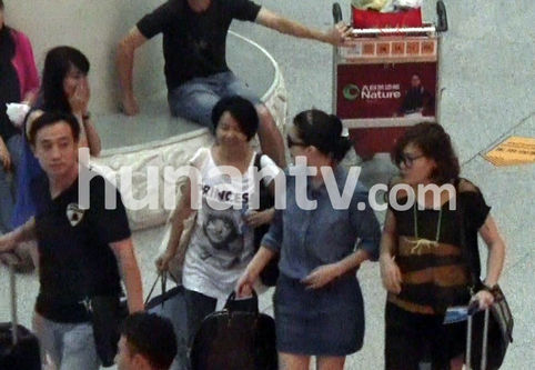 范冰冰回京經(jīng)紀(jì)人護(hù)駕 牛仔連身衣活像阿拉蕾(圖)