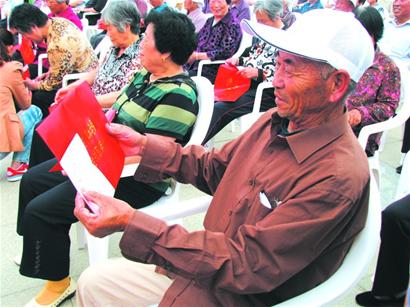 ????去年國慶節(jié)前,家住城陽區(qū)夏莊街道王家曹村的黃培芳老人收到了子女送來的禮物——一份養(yǎng)老保險繳費單。15年的養(yǎng)老保險費一次性繳清后,黃培芳在年底滿60周歲時就可領到養(yǎng)老金。黃培芳說,“現(xiàn)在我們村里子女孝順老人,時興的是送養(yǎng)老保險了。這樣,兒女們減輕了負擔,老人們也沒有了后顧之憂。”近日,記者又來到了膠南市尹家村見到了尹衍俊老人,“今年提標了,7月份開始每月漲了55塊,我現(xiàn)在一月能開473塊錢了!”老人激動地告訴記者。