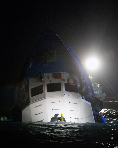 10月1日晚,香港南丫島榕樹灣附近海面被撞沉的渡輪,現(xiàn)場(chǎng)救援。