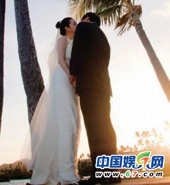 李英愛09年在夏威夷結(jié)婚照片 與老公接吻