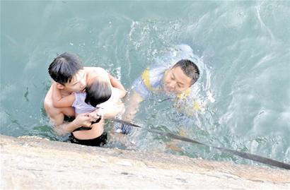 青島早報2012年5月4日訊 昨天上午,一則題為《青島帥小伙跳海救人后低調(diào)走掉真給青島人長臉》的網(wǎng)帖引來眾人關(guān)注,網(wǎng)友“開心烏拉呆呆”將其拍攝的青島小伙救人后低調(diào)離開的6幅照片全部發(fā)到網(wǎng)上,照片中救人的小伙裸著上身,穿著一條黑色褲子往岸上走,孩子的親人追上他想要表示感謝,但他說什么都不要,最后小伙自己攔住一輛出租車去醫(yī)院看自己的傷勢。