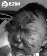 ????寶寶隨后被送至金華市中心醫(yī)院,醫(yī)生對(duì)他實(shí)行了全麻氣管切開手術(shù)。由于傷口太深,有的地方肉都沒有了,醫(yī)生不得已在寶寶臉上縫了上百針。