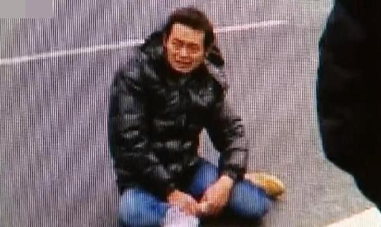 圖為2月3日,秦先生在事發(fā)現(xiàn)場(chǎng)追討錢款。