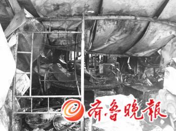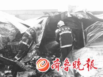 ????21日14時(shí)30分,讀者撥打本報(bào)熱線電話89772345反映稱,長(zhǎng)沙路一處廠房起火,濃煙滾滾。14時(shí)50分,記者趕到事發(fā)現(xiàn)場(chǎng)注意到,起火點(diǎn)位于長(zhǎng)沙路與德興路交叉口的藝鑫海玻璃廠院內(nèi),院內(nèi)數(shù)間彩鋼板房冒出滾滾黑煙,消防隊(duì)員正在架起水槍滅火。記者看到,板房的頂部被燒變形,中間部分已經(jīng)倒塌,兩側(cè)鋼板被燒變形后倒在地上,板房?jī)H剩四角的骨架在勉強(qiáng)支撐著。板房?jī)?nèi)部一片狼藉,全是燒焦的鐵床、取暖用的火爐、臉盆等生活用品,消防隊(duì)員從板房?jī)?nèi)搶出好幾個(gè)外部被燒黑的小型煤氣罐,現(xiàn)場(chǎng)能聞到一股刺鼻的味道,消防隊(duì)員稱,宿舍內(nèi)還有裝有電焊氣體乙炔的氣罐。