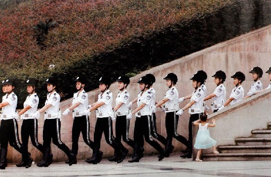 2010年8月16日,重慶市人民廣場,重慶交巡警女子特勤支隊(duì)。(圖片來源:南都周刊)