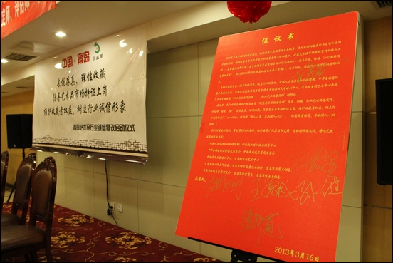 ????在日前的誠信倡議啟動儀式上,青島儲玉閣藝術中心向社會各界發(fā)出倡議:呼吁島城同行響應國家“規(guī)范藝術品經營管理”號召,加強“職業(yè)藝術品鑒定師、評估師”培養(yǎng),推廣“去偽存真,理性收藏,倡導藝術品市場持證上崗,維護收藏者權益,樹立行業(yè)誠信形象。” |