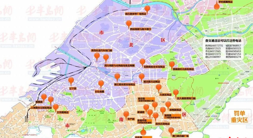 連日來記者對(duì)島城亂停車重點(diǎn)管制路段進(jìn)行了調(diào)查,江蘇路青醫(yī)附院周邊、延吉路萬達(dá)商圈、臺(tái)東商圈、漳州路商業(yè)圈、李村商圈、撫順路農(nóng)貿(mào)市場(chǎng)、原四方利群周邊等這些區(qū)域每天有近萬次亂停車行為,為了保證道路順暢,這些重點(diǎn)區(qū)域罰單迎風(fēng)飛揚(yáng),但仍無法杜絕亂停車現(xiàn)象。記者經(jīng)過調(diào)查,繪制出島城亂停車、貼罰單最多的地區(qū),給亂停車的司機(jī)敲響警鐘。
