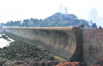 昨天下午,記者來到小青島公園看到,防浪壩東西長(zhǎng)約150米,呈流線型設(shè)計(jì)?!斑@段防浪壩很結(jié)實(shí),我在這工作期間,沒有維修過。”一名小青島公園內(nèi)的工作人員說。