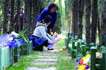 在山坡下有幾個(gè)人正在一排墳堆前燒紙,其中一個(gè)人正拿著鐵鍬在鏟林子里的新土往墳堆上添,冥紙和草木混在一起燃燒發(fā)出噼里啪啦的響聲,很遠(yuǎn)就聽(tīng)得到。許多上山踏青的人走到這里都在路邊停一下,看著燒紙的人,踏青的市民都眉頭緊鎖著,小聲議論著這種方式的不妥。忽然記者發(fā)現(xiàn)前面有一個(gè)地方正在冒著濃煙,跑過(guò)去一看是一位大叔在焚燒冥紙的時(shí)候把周?chē)母刹蔹c(diǎn)著了,正在忙著用鐵鍬撲火。(記者 孫靜芳 實(shí)習(xí)生 于航偉)