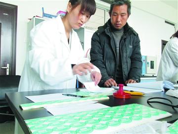 ????前天中午10點(diǎn),記者等到了第一個(gè)來領(lǐng)取藥檢結(jié)果的韭農(nóng)——夏莊鎮(zhèn)高家店村的李萬軍。因?yàn)樗帣z合格,李萬軍領(lǐng)到了合格證,還有一沓子編號(hào)標(biāo)簽:332號(hào)。標(biāo)簽上印著大金鉤韭菜的國(guó)家地理標(biāo)志商標(biāo)和一個(gè)號(hào)碼?!皼]有合格證,村里不讓我割韭菜;沒有這個(gè)號(hào),販子不收我的菜?!崩钊f軍說。