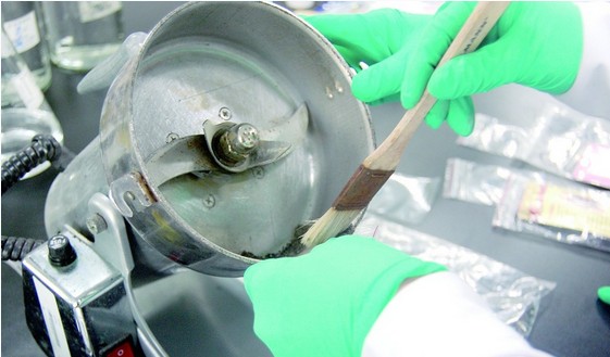 ????“我們使用的是提取的方法,所以,首先要將干海參充分粉碎,這樣才方便用試劑進行提取?!笨蒲腥藛T說,如果某些海參比較小,就需要2個海參進行粉碎,以便取得更多的實驗檢材。在將13個樣本的海參一一進行編號后,科研人員從1號開始,取出海參,放進粉碎設備,對海參進行粉碎。