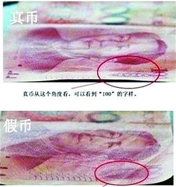 據(jù)了解,“PL078574”開頭的新版百元假幣仿真度高,但是與真幣還是存在一定區(qū)別:假幣比真幣短2毫米;正面左下角“100”字樣不同角度觀察不會(huì)變色;正面右上角處無“100”字樣水印;中間金屬線透光看不清晰。(記者 張勃)