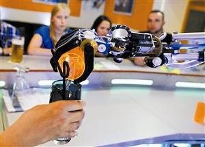 德國(guó)一家酒吧內(nèi),酒保手端一杯雞尾酒遞給顧客,所有顧客雙眼緊盯酒保,或好奇,或贊賞,因?yàn)檫@名酒??刹皇且话闳?,而是仿人機(jī)器人“卡爾”。