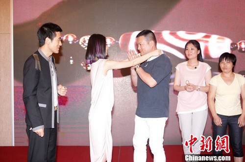黃圣依為定向認捐30萬元的“牧心齋”董事長張明戴上天珠。