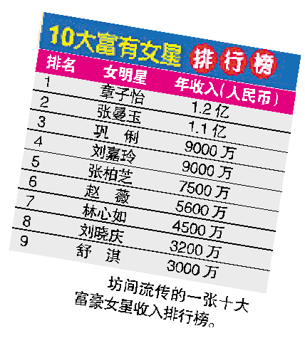 女星年收入排座次