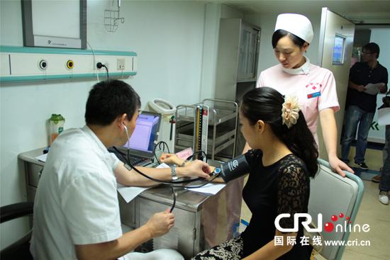 醫(yī)院船大夫?yàn)轶w檢人員量血壓 攝影:何星宇