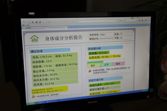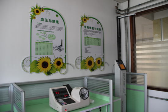 ????經(jīng)過樓山街道的多方籌措,最終由青島一家醫(yī)療器材公司出資捐建的體檢中心,位于樓山街道市民中心二樓一個十余平的小屋內(nèi),原本為社區(qū)書記、主任的辦公室,體檢中心缺場所,書記、主任“發(fā)揚(yáng)風(fēng)格”,先將自己的辦公室讓了出來?,F(xiàn)在進(jìn)駐驛站已經(jīng)有五臺機(jī)器,造價高達(dá)二十多萬,包括:人體分析儀、超聲波體檢機(jī)、尿檢機(jī)、血壓儀、心電圖儀等。驛站并常駐著兩位胸科醫(yī)院退休返聘的醫(yī)師,在體檢時為居民提供使用指導(dǎo)和針對體檢結(jié)果的解釋說明,并給予一些保健建議,同時為每位體檢者建立醫(yī)療檔案,以備今后不時之需。