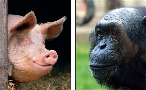 報(bào)道稱,大部份生物學(xué)家一直相信人類由猿猴進(jìn)化而成。但研究動(dòng)物混種培植的世界權(quán)威之一麥卡錫指出,人類雖然與猩猩存在很多相似特征,但是人類還有許多靈長類動(dòng)物沒有的特點(diǎn)。而麥卡錫認(rèn)為,這些特點(diǎn)都能在豬身上找到,例如皮膚無毛、有厚厚的皮下脂肪、眼珠較淺色、鼻子突出、有濃密的睫毛等。