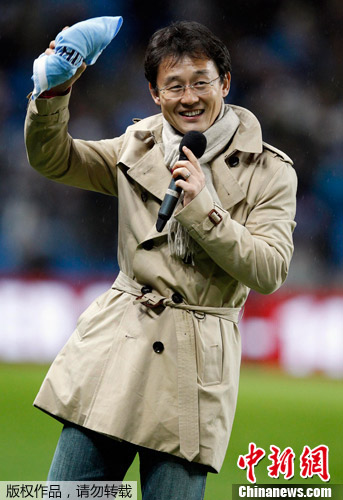 2012年1月3日,前曼城球員孫繼海在中場休息時向觀眾致意。