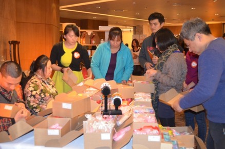 11月30日下午,北京希爾頓酒店舉辦了2013年圣誕列車點燈儀式暨圣誕慈善集市活動。在熱鬧的圣誕慈善集市上,九易廣告公司員工攜手朝陽區(qū)玉華殘障人士康養(yǎng)服務(wù)中心進行了手工精油皂的義賣,本次義賣的手工精油皂均由“玉華服務(wù)中心”的殘障孩子們親手制作而成,其制品涉及主題多樣,包含了十二生肖、圣誕、婚慶等多個主題,每個主題下又有著豐富的造型。這些殘障孩子們雖然相比一般的孩子沒有較好的智力天賦和動手條件,但作為社會的一員,仍十分渴望為別人貢獻出自己的價值,而在玉華服務(wù)中心和社會愛心人士的幫助和引導(dǎo)下,他們的創(chuàng)造力和潛力得到了極大的發(fā)揮。這些藝術(shù)性和實用性俱佳的精油皂品,無不吸引著現(xiàn)場來賓的爭相購買,成為了整場活動的一大亮點.