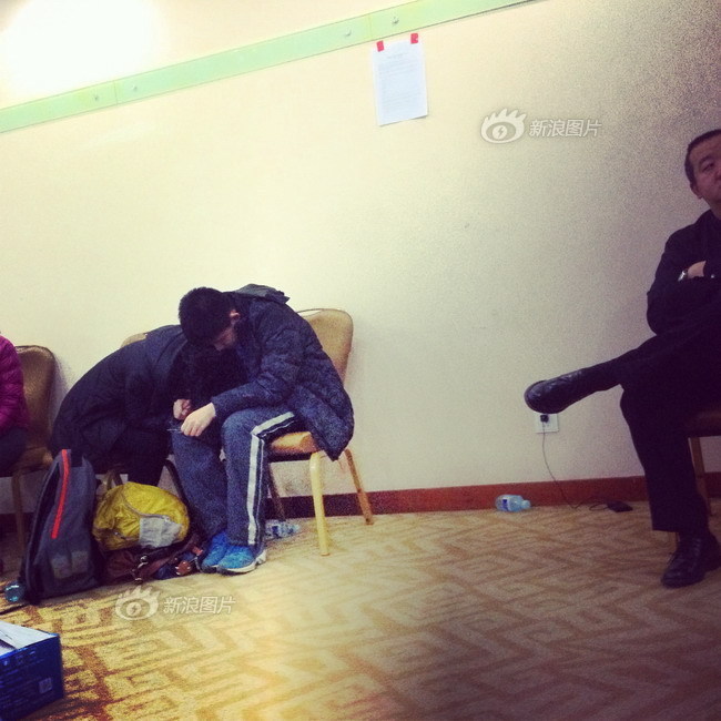 3月8日晚,北京麗都飯店里,等待消息的家屬。馬航在發(fā)布會(huì)上稱,所有乘客直系親屬,已通知他們?cè)诩∑禄虮本┑群颉<覍贌o(wú)人理,是因?yàn)轳R航在京人員太少。