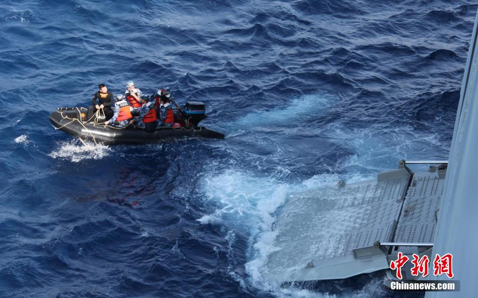 井岡山艦放出小艇展開搜救。
