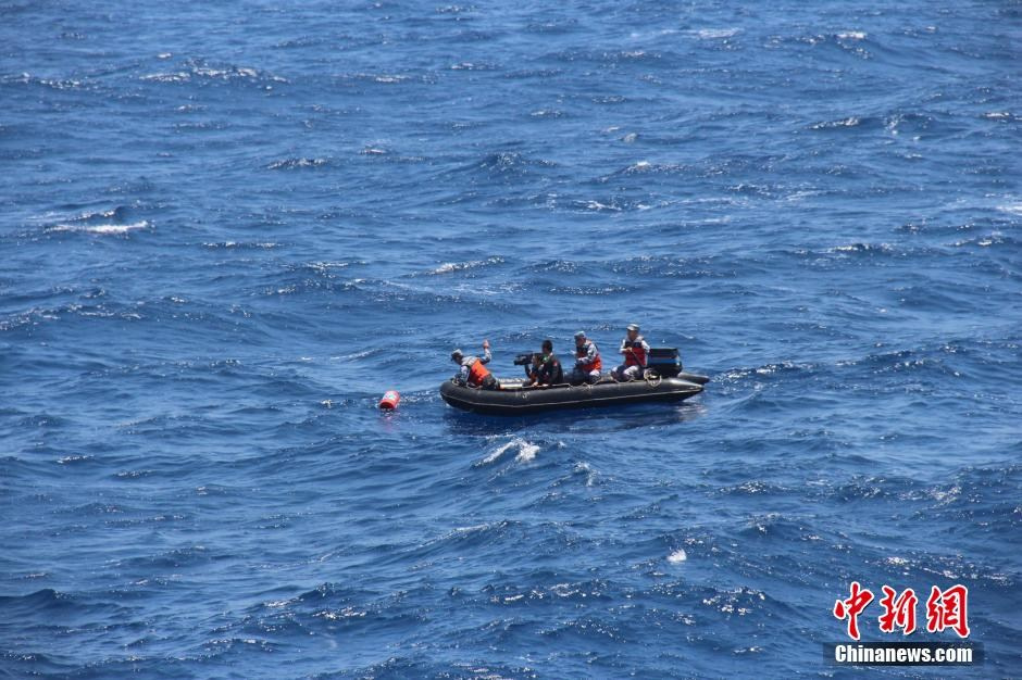 3月11日上午9時40分,井岡山艦發(fā)現(xiàn)一件疑似紅色救生衣,立即出動橡皮艇打撈,不放過一絲希望,后經(jīng)證實與失聯(lián)飛機無關(guān)。