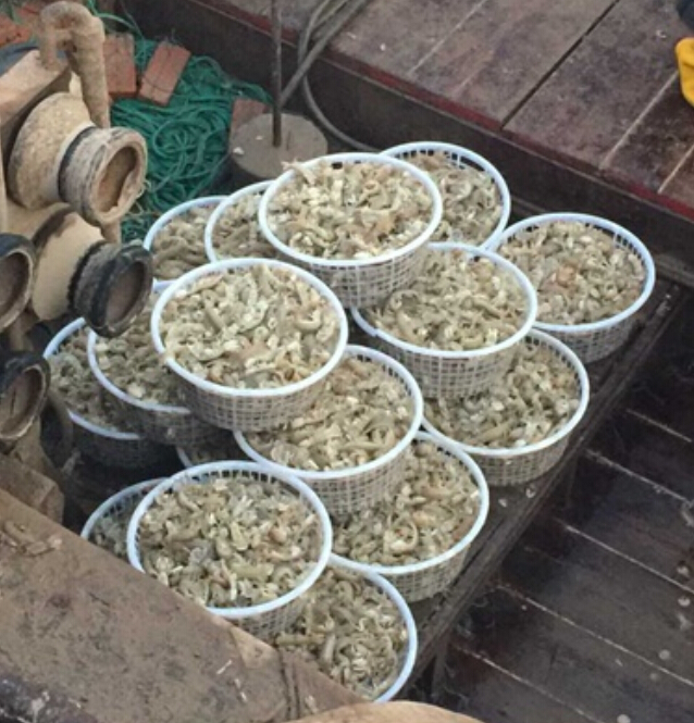 ????船老大們洋溢著幸福的笑容,把一船船活蹦亂跳的蝦虎和魚蟹搬上岸。
