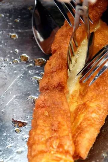 ????一斤面粉,5個雞蛋,2袋鮮奶,面粉靠雞蛋和牛奶在8℃到10℃的恒溫環(huán)境下自然發(fā)酵1個小時,用品牌花生油現(xiàn)場炸制,這就是香油果子口感松脆有韌勁的全部秘籍。
