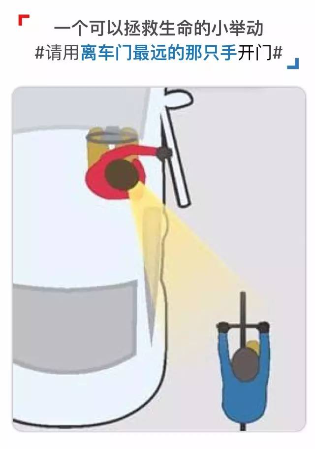 各個城市的交警大隊、支隊的微博和老司機們也一再強調(diào)反手開車門。用離車門最遠的那只手去開車門有必要成為全社會的基本共識,無論是開車還是坐出租車!