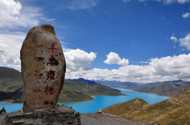 羊卓雍錯(cuò)與納木錯(cuò)、瑪旁雍錯(cuò)并稱西藏三大圣湖,藏語意思為“碧玉湖”。羊湖景色之美,冠絕藏南,當(dāng)?shù)夭厝擞妹窀栀澝肋@里:天上的仙境,人間的羊卓。天上的繁星,湖畔的牛羊。