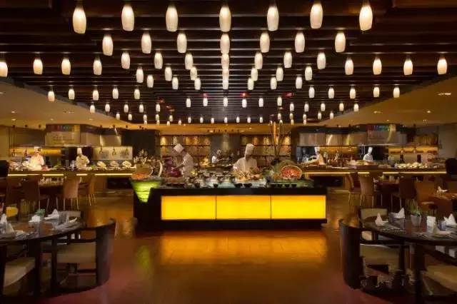 青島香格里拉大酒店一品堂自助餐廳將海洋的感覺融入餐廳,花崗巖的食品臺,未經(jīng)雕琢的天花板,原木的餐臺相融合帶來了全新的獨特的用餐體驗。餐廳共有9個獨立食檔,通過極具欣賞性的布局使客人暢游其中,仿佛置身于“美食大劇院”。