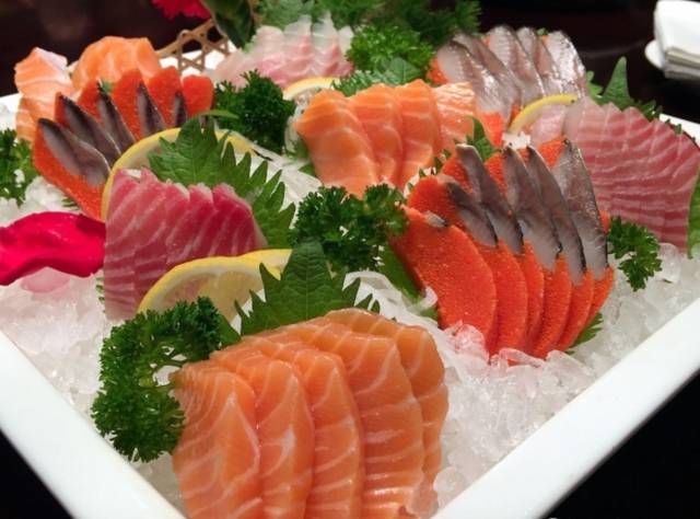 海參鮑魚個吃有好幾種做法可選,三文魚很新鮮,切的很厚,很大塊,吃起來很過癮!