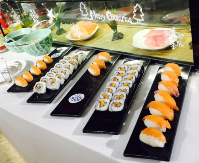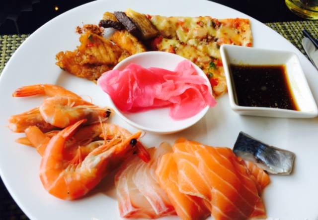 菜品較全,中式西式刺身都有,還有燒烤和海鮮。三文魚還是一如既往的好、非常新鮮。