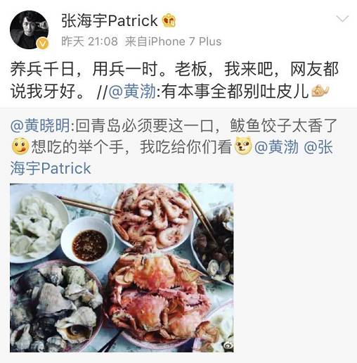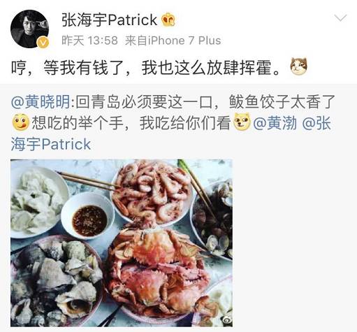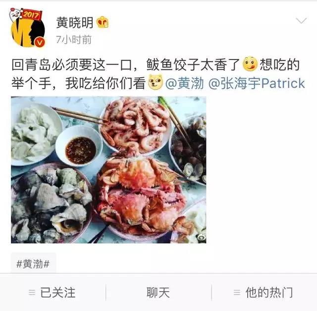 黃曉明回家鄉(xiāng),必須得來頓海鮮作為一個青島人,微博中顯擺顯擺青島海鮮那是必然的??粗【幒灭挵?!網(wǎng)友紛紛評論“能不能分給我們吃”...