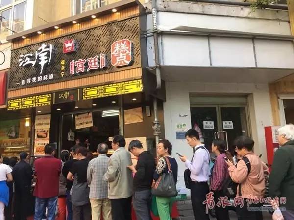 ????27日上午,受到“棉花肉松蛋糕”事件影響的江南宮廷糕點(diǎn)店經(jīng)過關(guān)門修整后重新開業(yè),通過免費(fèi)送蛋糕的方式答謝廣大顧客支持,并在店門口張貼出官方發(fā)布肉松蛋糕洗出棉花不實(shí)的辟謠信息為肉松蛋糕正名,等待購買蛋糕的市民排起了長隊(duì)。