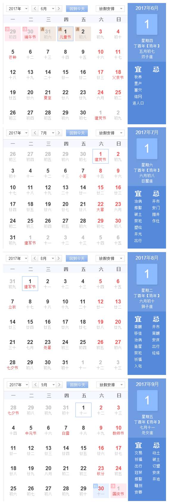 6月往后4個(gè)月內(nèi)再無假期哦!